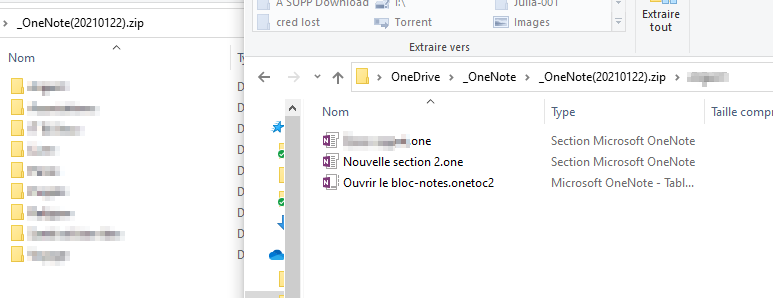 Attention : Je ne vous conseille pas de dézipper le dossier dans OneDrive car vous risquez de rentrer en conflit avec les bloc-notes déjà utilisés par OneNote sur OneDrive.