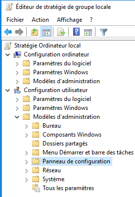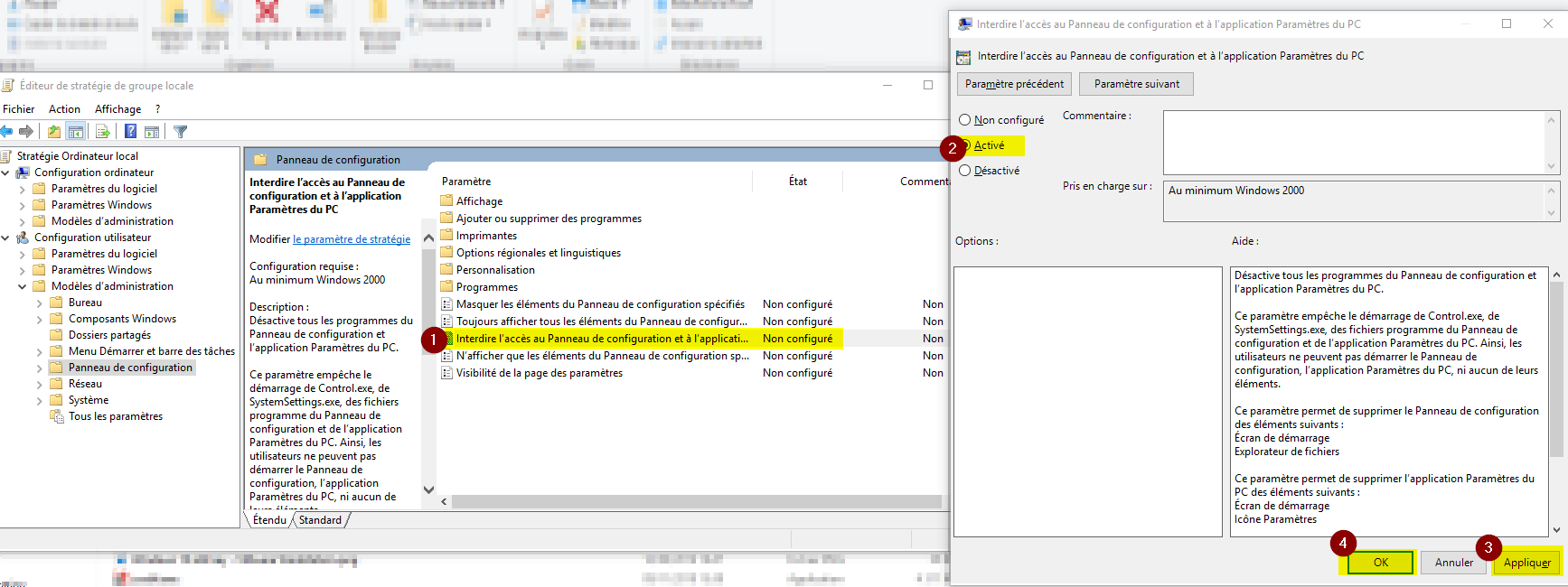 1 – Désactiver totalement l’accès au Panneau de configuration